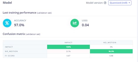 Figure 3 : Edge Impulse dispose de plusieurs techniques d’analyse, notamment d’une matrice de confusion, pour mesurer les performances du modèle (Source : Green Shoe Garage)
