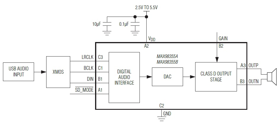 Maxim MAX98355A/MAX98355B Audio Amplifiers