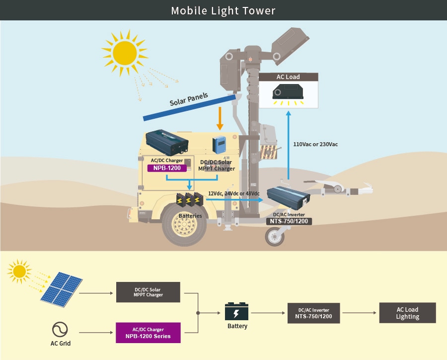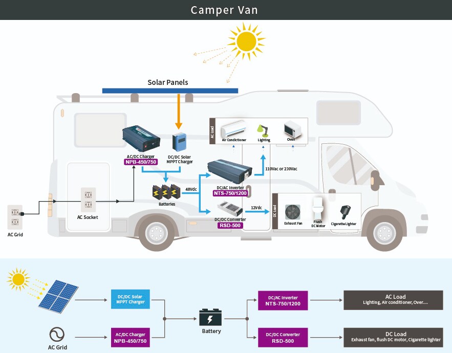 Une solution tout-en-un qui intègre le chargement CA-CC, l'inversion CC-CA et la dérivation CA.