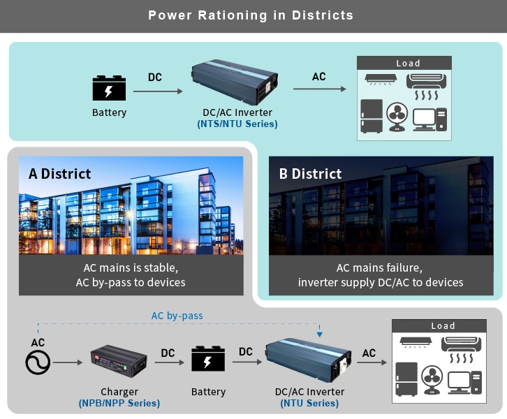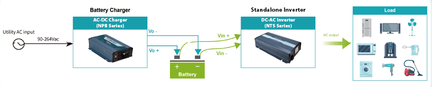 Les chargeurs et onduleurs de MEAN WELL couvrent les produits avec une puissance nominale de 30 W à 3 200 W et peuvent être utilisés ensemble dans divers systèmes. Les chargeurs fournissent une alimentation CA-CC pour charger la batterie, tandis que l'inverseur convertit l'alimentation de la batterie en CA pour alimenter les équipements CA. Ces chargeurs et onduleurs de MEAN WELL sont adaptés au stockage d'énergie verte, à l'alimentation de secours, aux dispositifs de charge et aux autres équipements associés.Vidéos